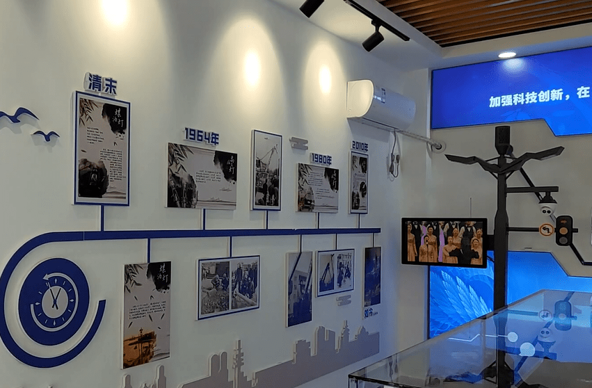 在市城管局路灯管理处智慧路灯展示大厅,工作人员向参观市民介绍了近百来来,我市路灯的变迁。
